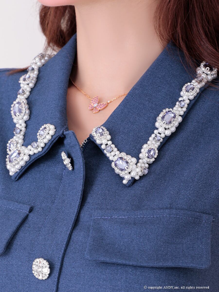 パールとビジューの襟がお顔周りを華やかに演出♡