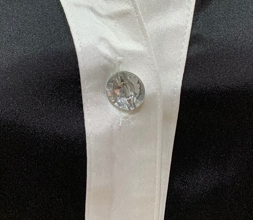 ボタンもビジューボタン又はパール風ボタンを採用でキラキラ胸元を演出してくれる1枚です。