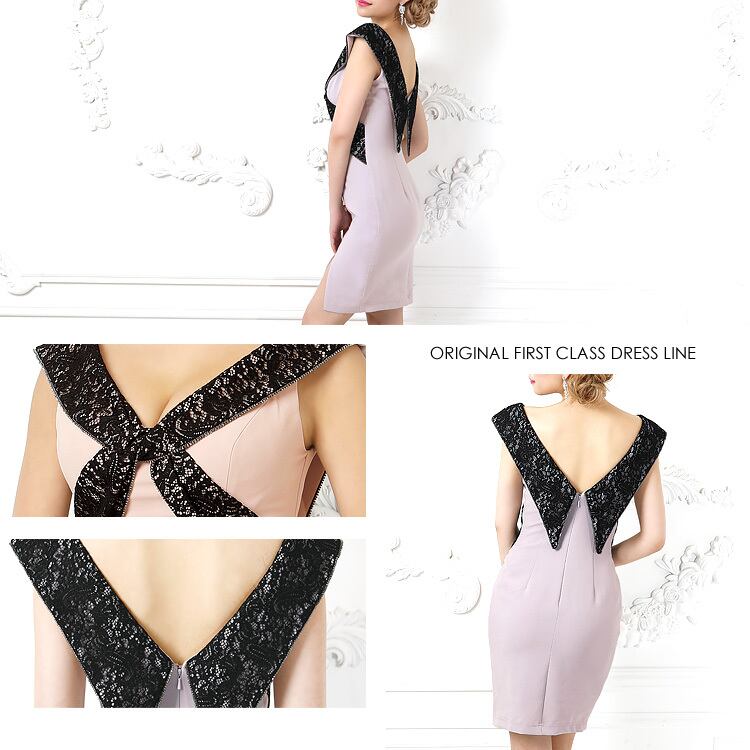 レース地で仕立てたインパクトあるクロスデザインがファッショナブルなタイトミニドレス。