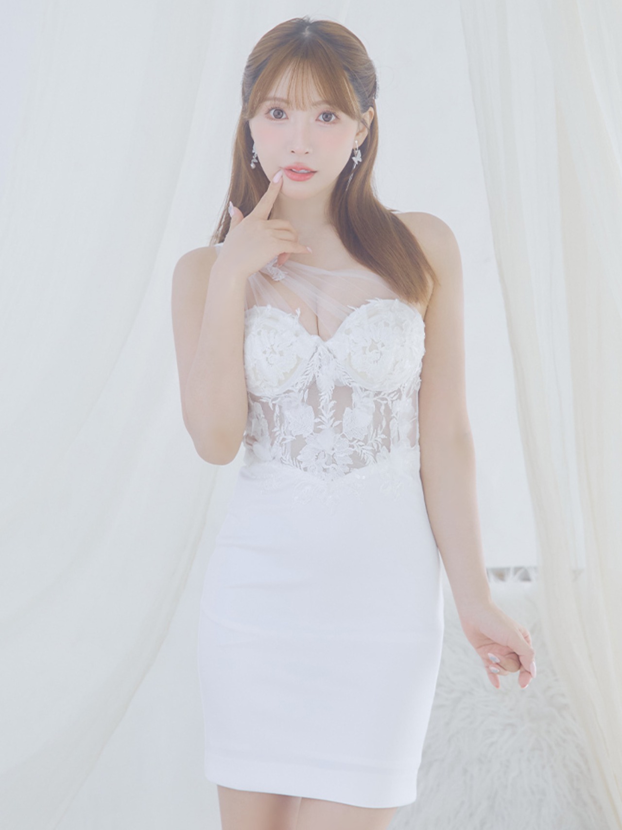 ワンショルダーと透ける素肌がセクシーなタイトミニドレス♡